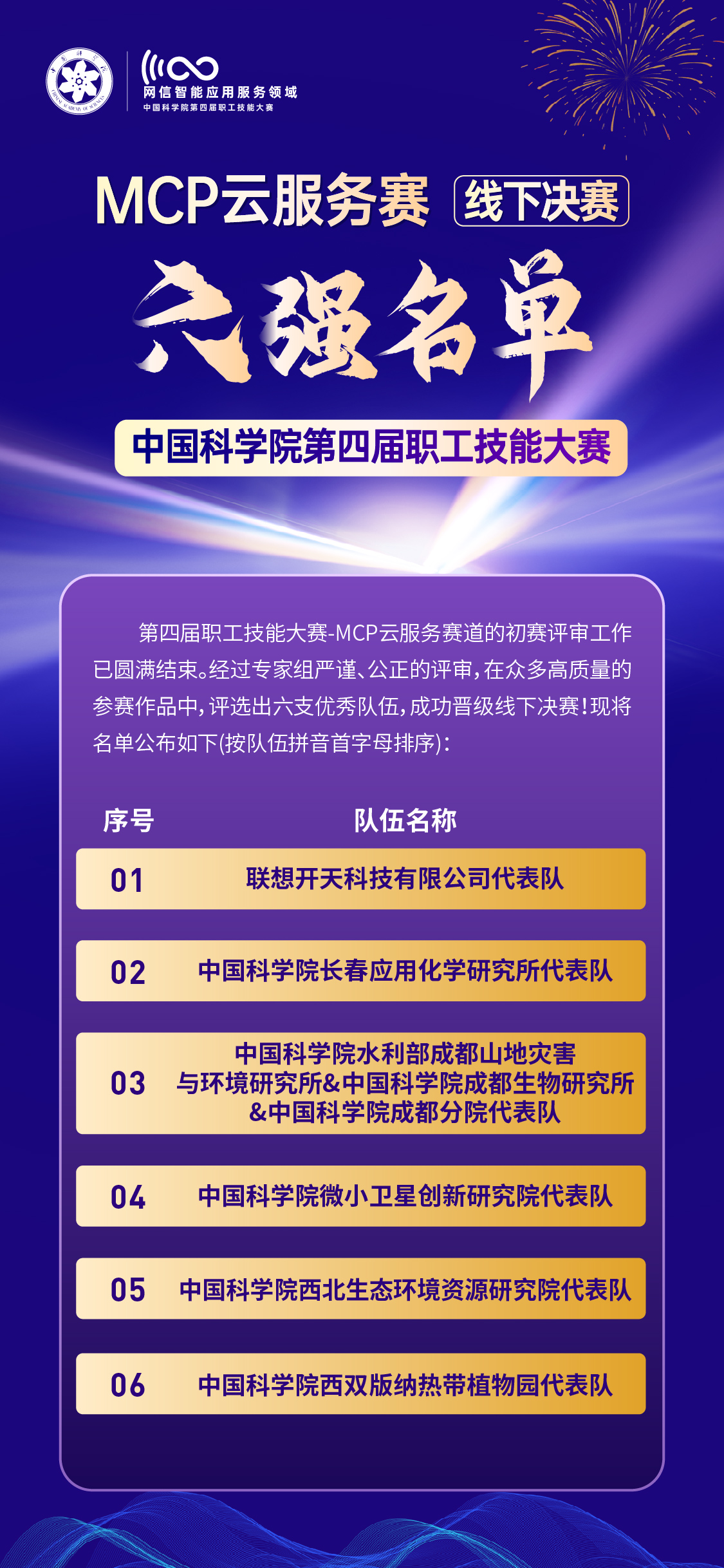 中国科学院第四届职工技能大赛网信运维领域MCP云服务赛线下决赛晋级名单