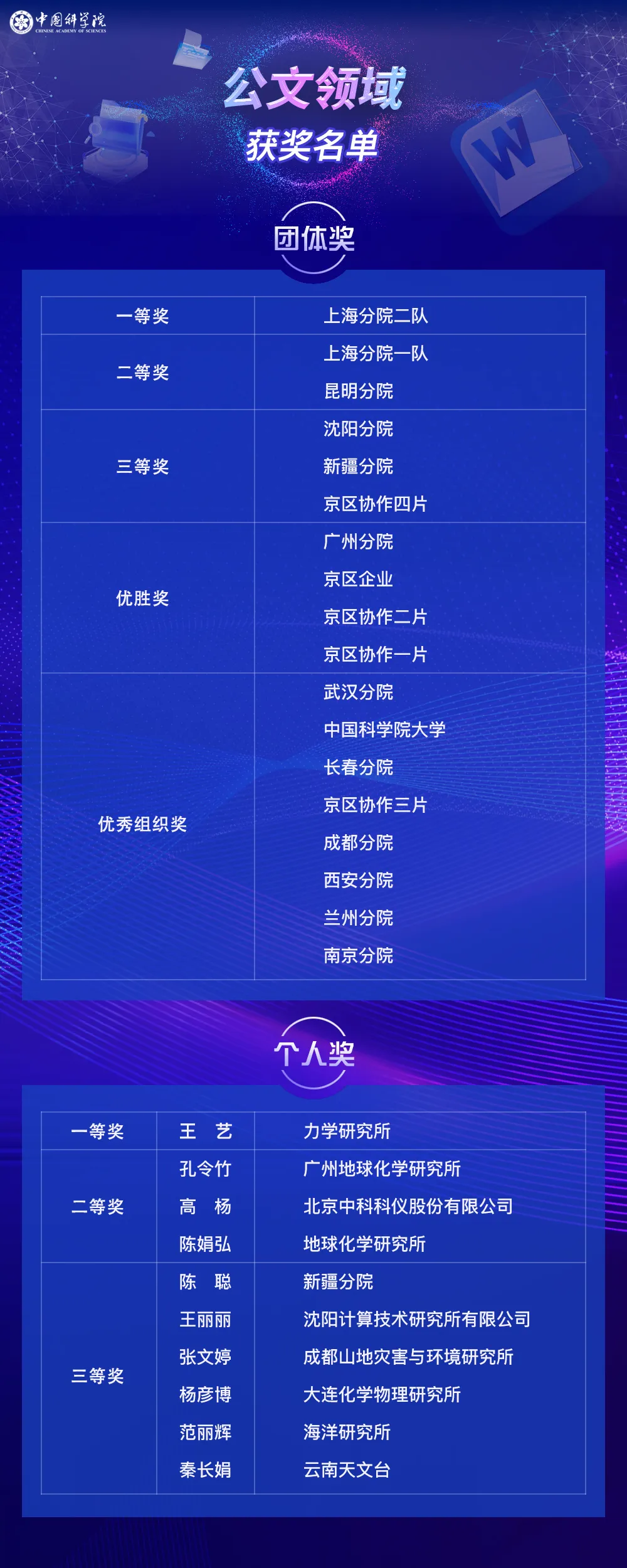 获奖名单