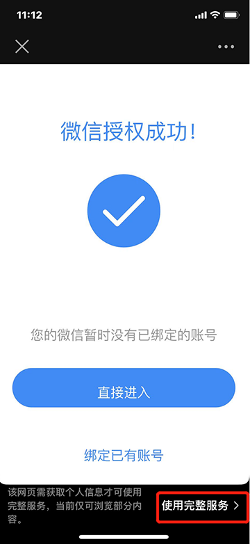 2.选择“使用完整服务”进行微信授权