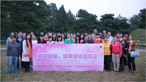 为进一步贯彻中科院党组“3H”工程,切实关心关爱我院单身职工,2013年10月13日,“相约金秋 缘来你也在这里”单身职工联谊活动在中科院植物所北京植物园举行。此次联谊活动依托中科院“科苑佳缘”网站资源,由中科院妇工委发起,联合院团委主办。来自京区各单位和建行北京中关村分行、航天二院二十五所等外单位的近60名单身职工参加了活动。
