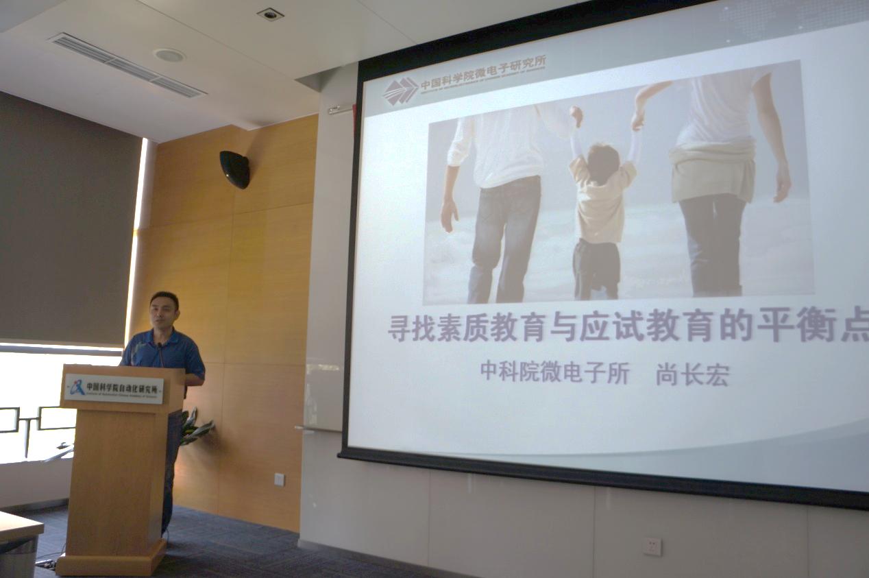 会上,获得中央国家机关干部职工家庭建设好经验“最佳经验奖”的微电子所尚长宏,针对职工子女家庭教育问题,作了题为《寻找素质教育与应试教育的平衡点》的主题报告。他从课外活动带动课内学习、兴趣带动学习、从公益活动融入社会、提升素质等四个方面分享了自己在子女教育过程中的好经验和好方法。报告结束后,他与现场职工进行了交流,并对职工提出的疑问一一耐心解答。