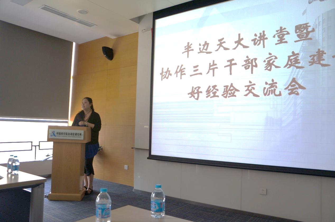 9月10日第三十个教师节当天,由中科院妇工委主办、京区协作三片承办的“半边天”大讲堂——协作三片干部职工家庭建设好经验交流会在自动化所举办,中科院妇工委办公室主任、京区党委群工部部长霍妍丽出席活动并讲话,来自协作三片各单位的近40名职工参加活动。活动由自动化所党委书记王小明主持。
