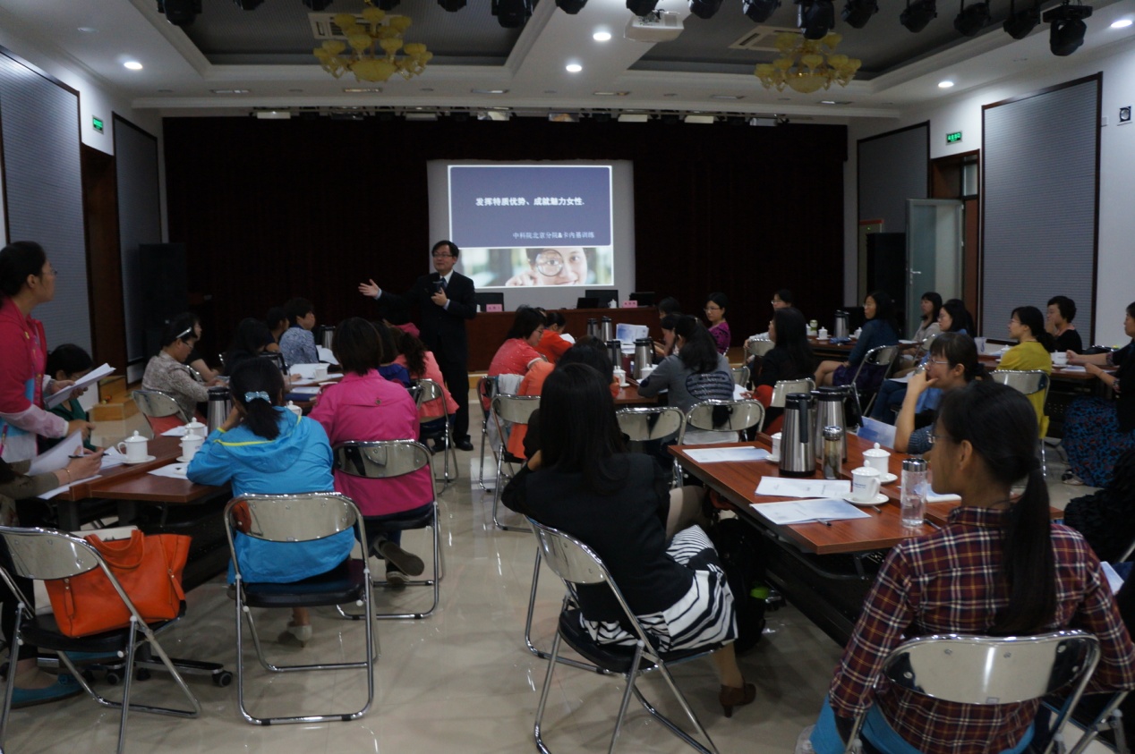 为切实加强青年女科技骨干培养教育,不断提高青年女科技骨干综合素质,为其学习、提高、发展创造有利条件,9月15日至16日,中科院妇工委在京举行了中科院京区第三届青年女科技骨干培训班,院妇工委主任、京区党委副书记王秀琴和院妇工委副主任、心理所所长傅小兰分别主持了培训班不同阶段的学习,来自京区41个单位的49位青年女科技骨干参加了培训。