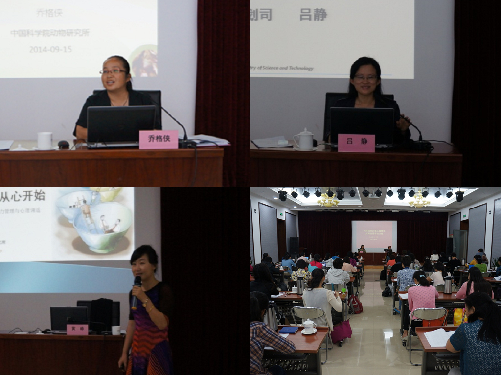 此次培训班针对女性科技人才成长、国家科技计划及管理改革、家庭与事业的平衡、女科技工作者压力管理及心理调适等内容,分别请动物所党委副书记、副所长乔格侠作《和谐家庭是事业的助推器》讲座;科技部发展计划司综合规划处处长吕静作《国家科技管理改革》讲座;心理所副教授黄峥作《女科技工作者的压力管理与心理调适》讲座,并在培训课程后安排了提问和答疑互动环节。