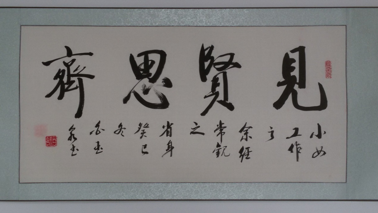 回国以后,父亲为我亲自书写了《论语》中的名言—见贤思齐,现在悬挂在我的办公室,时刻提醒着我和我的学生,见到有才德的人就想着与他平齐。