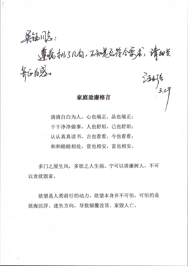 为深入贯彻落实习近平总书记“注重家庭、注重家教、注重家风”的家庭建设重要论述和批示精神,根据中央国家机关纪工委、妇工委的统一部署,结合我院党风廉政建设和反腐倡廉建设要求,院妇工委联合京区纪委共同开展了“清风正气传家远”家庭助廉系列活动。