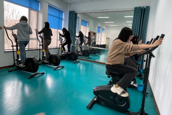 女职工在专属活动室健身