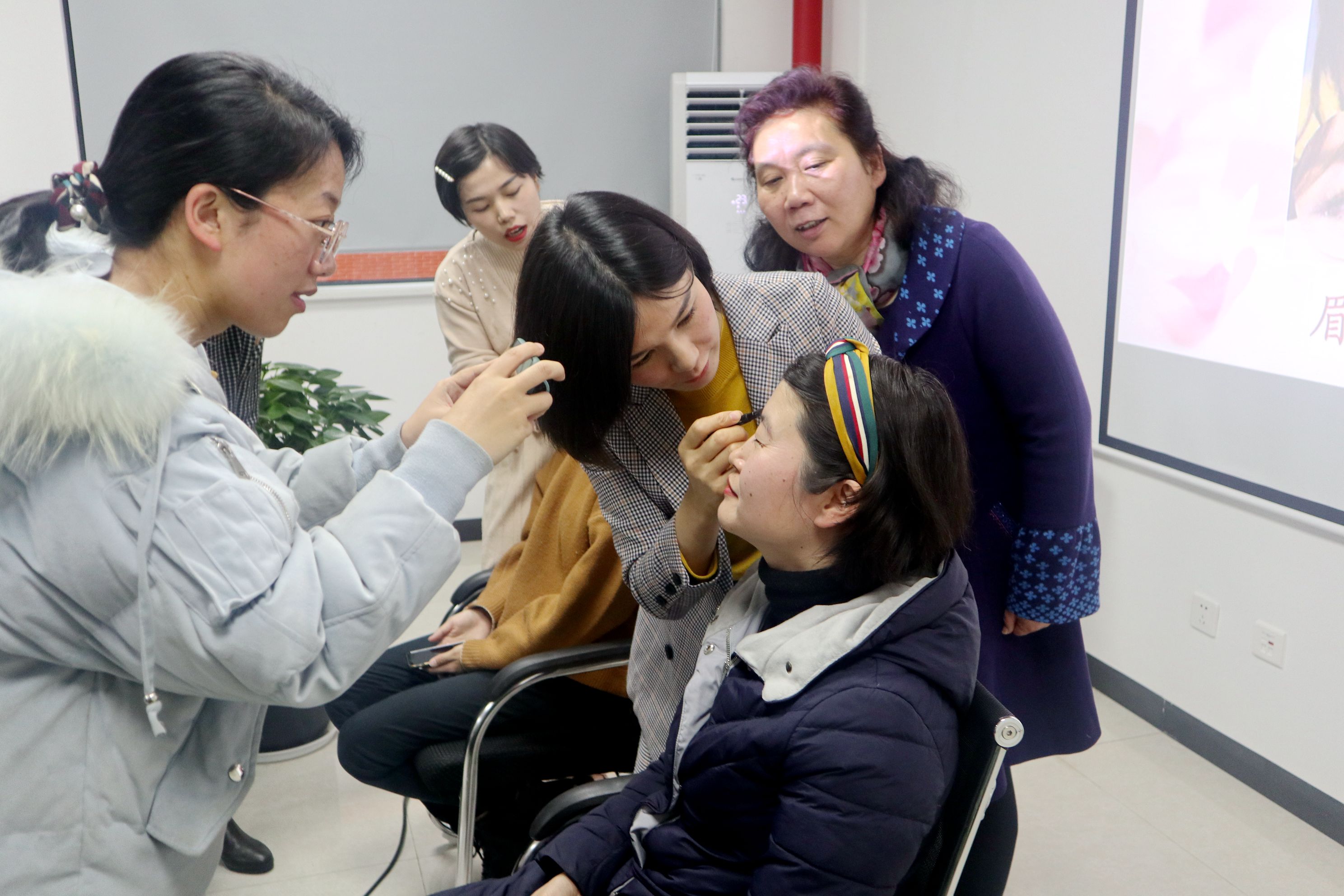 活动邀请到高级色彩指导专家李艳丽开展题为“爱自己 将美丽进行到底”的培训。她从大家非常关注的社交活动“第一印象”出发,结合仪容、仪表、仪态三要素,从色彩搭配和妆容修饰两个维度畅谈女性如何提升个人形象,同时结合现场案例解读色彩搭配和妆容,并进行了示范。