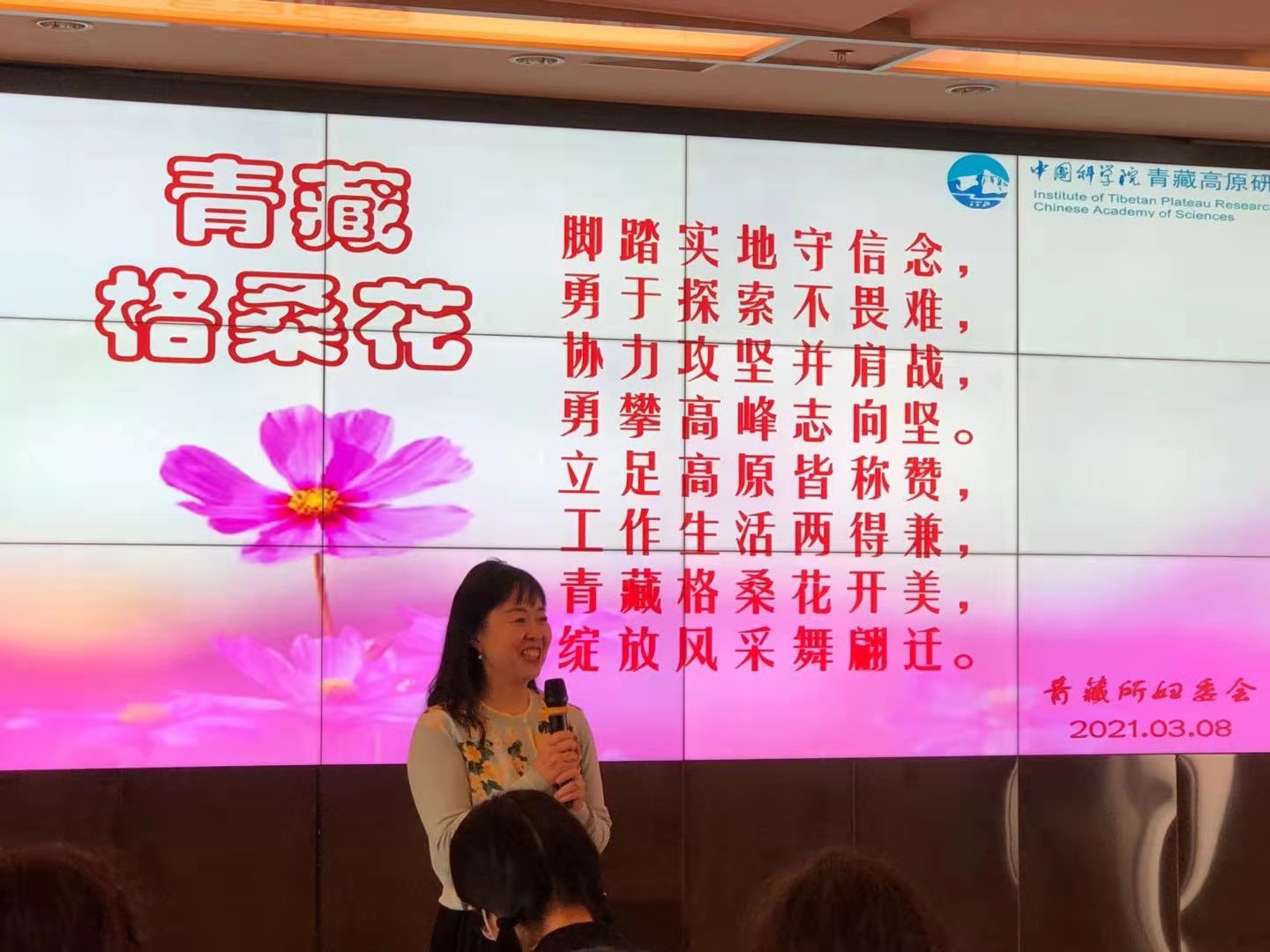 围绕院“巾帼心向党 奋斗新征程——2021年科苑女性活动月”的主题活动部署,中科院青藏高原所妇委会于3月8日在京举办了“格桑花开”绽放青藏巾帼风采主题活动,隆重纪念“三八”妇女节,喜迎中国共产党成立100周年,激励和引领广大女职工矢志投身科技创新事业,脚踏实地、勇攀高峰,推动青藏高原事业发展再上新台阶。