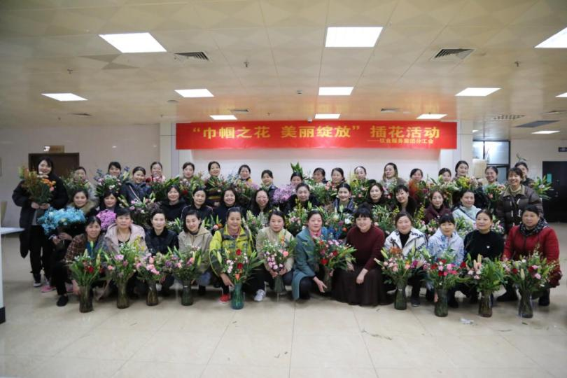 3月8日下午,在校工会的大力支持下,饮食服务集团分工会举办了“巾帼之花 美丽绽放”“三八”节插花活动,超40位女员工参加本次活动。