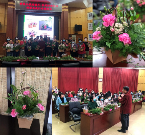 3月24日,邀请植物所副所长、国家杰出青年科学基金获得者、植被与环境变化国家重点实验室职工支部书记冯晓娟研究员作题为“从植物到土壤:科研与成长”的讲座(图2),冯晓娟结合研究兴趣和个人经历,与参加讲座的女职工交流了科研探索的感受和心得,为大家树立了身边的优秀典型,发挥了积极进取的示范和引领作用。活动还邀请了植物所刘政安研究员结合自己的研究和爱好,作为题为“花悟一生——生活插花与体验”的讲座,刘老师为女职工讲授了插花文化和知识,随后,在各种鲜花的簇拥下,广大女职工兴趣盎然,在老师的指导下动手创作了各具特色的插花作品(图3)。