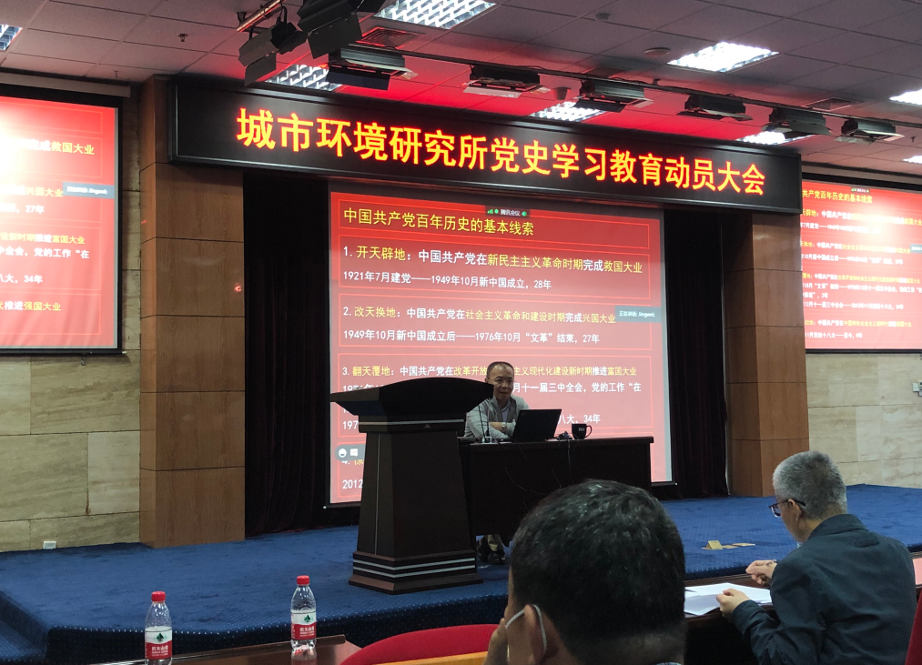 3月24日,所党委、工会组织开展党史学习教育动员大会,大会邀请了福建省委党史学习教育宣讲团成员、华侨大学马克思主义学院院长林怀艺教授作题为“学习党史,领悟中国共产党为什么能”专题报告,带领全所师生共同回顾中国共产党百年党史,为研究所十四五规划开局之年积蓄力量,学史增信,学史力行,把学习党史力量与研究所创新发展相融合,凝聚共同开创未来的信心,号召广大职工积极努力工作,与全所同志一道推动城市所事业再上新台阶,以优异成绩庆祝建党100周年。