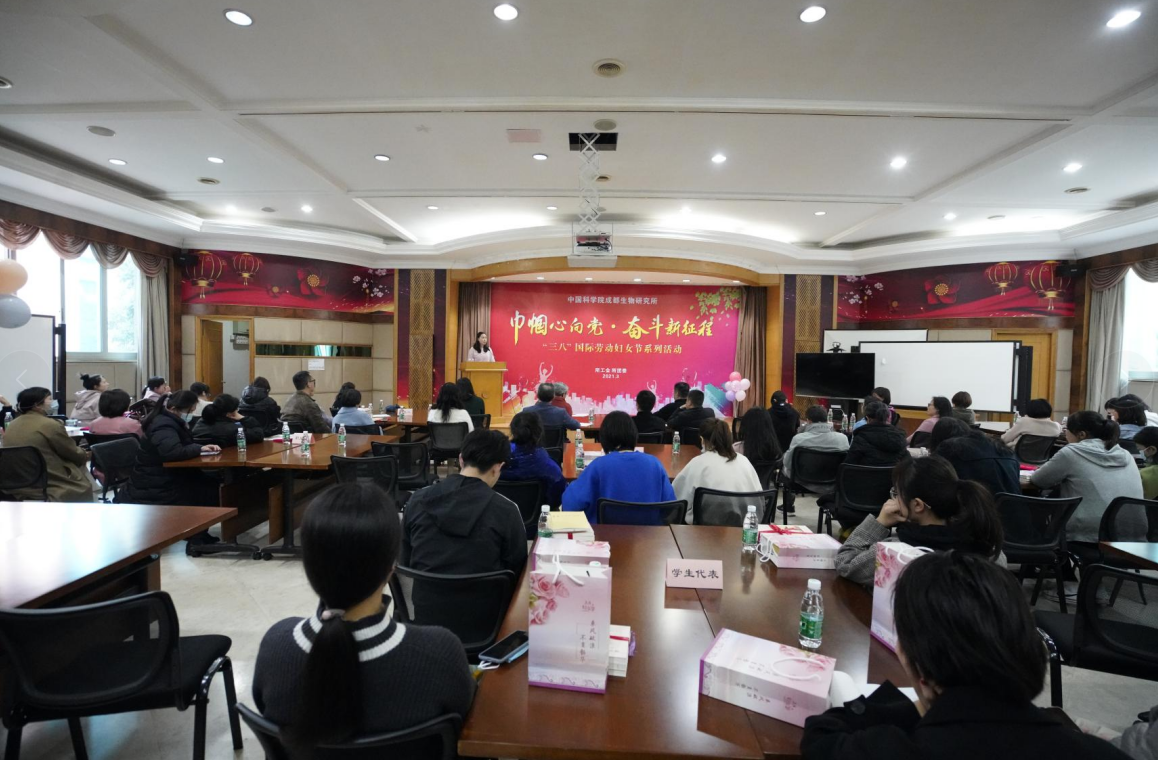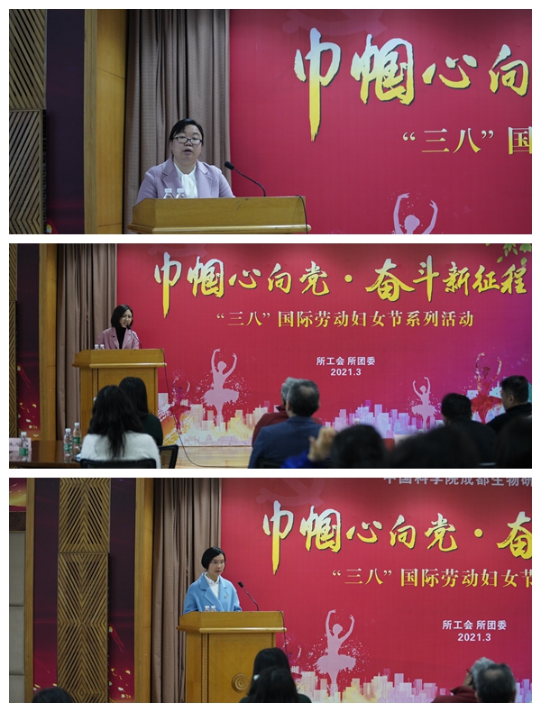 3月12日下午,为庆祝2021年“三八”国际劳动妇女节,激发全所广大女职工立足本职,开拓进取,中国科学院成都生物研究所工会开展“巾帼心向党 奋斗新征程”系列活动暨“先进女职工”表彰大会。引领·奋斗建功——表彰我所2020-2021年度先进女职工,并邀请3位先进女职工代表围绕“党的女儿话初心”开展交流发言;全所女职工70余人参加了会议。