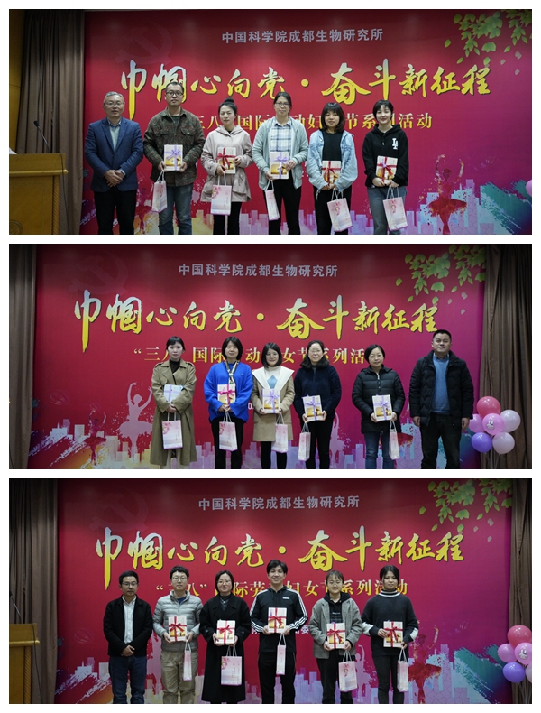 党委书记叶彦代表所党委向全所女同胞们致以节日的问候。他表示,三位“先进女职工”代表的发言能够反映出成都生物所女职工们的勤奋、踏实、追求卓越的工作状态。他希望全体女同胞学习成都生物所“先进女职工”热爱生活、团结协作的精神,牢记初心使命,为研究所的发展不断注入新的活力。