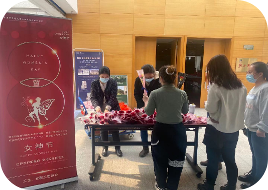 3月8日中午,女职工委员会在图书馆门前摆起了小花摊,为研究所每位女士送上一朵怒放的康乃馨。红色代表了爱与关怀,康乃馨的花语寓意着尊敬与祝福。赠人玫瑰,手有余香。每位收到这份祝福的科技女性都非常高兴,大家都表示将继续发扬自尊、自立、自信、自强精神,建功新时代、奋进新征程,共同努力,为中华民族这个“大家”和研究所这个“小家”的科技进步贡献巾帼力量,以新的成绩迎接党的百年华诞。