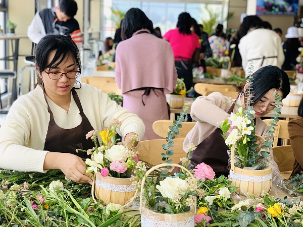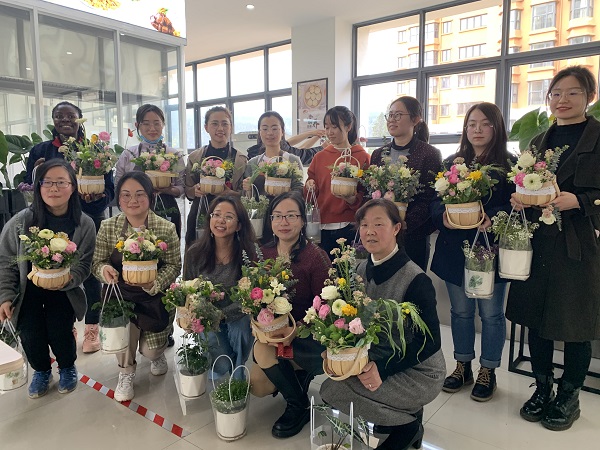 插花艺术,即指将剪下来的植物枝叶花果等作为素材,经过艺术造型和技术架构,重新配置成一件赏心悦目的花卉艺术品。三月万物复苏,春暖花开,花海中弥漫着春的气息,女同胞们通过花木抒怀,静心体验着这浪漫的愉悦与美好,用多姿多彩的内心发现了美、创造了美、分享了美,将花材变成了一件件独具匠心的花艺作品。经历的这个浪漫美好的下午,活动在大家的欢笑中结束。