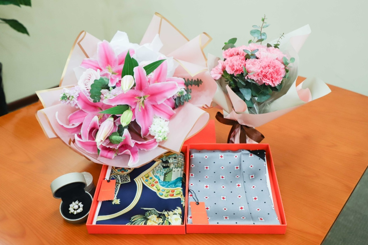 春回大地,万物复苏。2021年3月8日,第111个国际劳动妇女节如约而至,为感谢公司全体女职工的辛勤工作,提升女职工的形象风采,营造积极向上的良好氛围,中科集团、中科环保总部女职工委员会联合举办了“魅力丝巾˙绽放巾帼风采”主题活动,并精心为每位女神准备了丝巾、丝巾扣和鲜花等节日礼物,共40余名女职工参加了活动。本次活动为每一名女职工准备了丝巾和鲜花一份,意在通过上述活动和安排丰富女职工文化生活,营造积极向上的良好氛围,提升广大女职工的工作和生活热情。