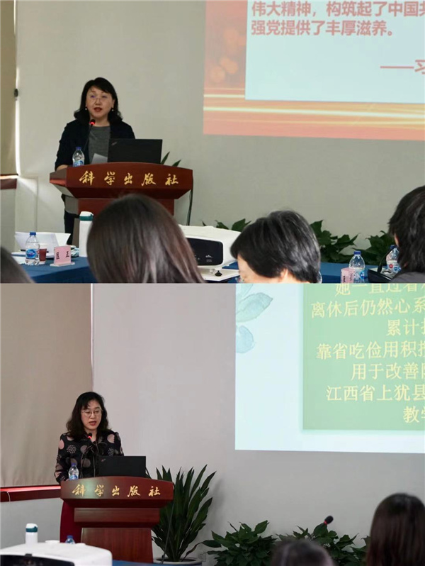 与会嘉宾和去年院妇工委“清风正气传家远”活动获奖单位及代表分别围绕“讲党史 传家风 共奋斗”三个主题进行汇报交流。中国科传王风雷分享了“永不凋谢的井冈兰”伍若兰的故事,带领大家深切缅怀了为国家、为民族壮烈牺牲的革命先烈的英雄事迹,张秀波讲述了全国脱贫攻坚楷模夏森老人的动人事迹;中科印刷张筱晨、中国科传匡敏、朱瑾、国科健康李建峰四位代表结合自身和家庭经历,分享了“感人至深和激人奋进”的家风家教故事;中国科传马思敏代表中国科传妇委会作了组织清风正气传家远工作的经验分享;中科集团闫柳媚、北京三环匡正、中国科传毛莹分享了女性“勇担使命、真抓实干、甘于奉献”的奋斗故事,展现了企业女性“巾帼不让须眉”的风采。