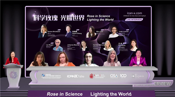 为庆祝三八国际妇女节,鼓励更多的女性科研工作者坚守初心,吸引更多的女性从事科学事业,长春光机所联合美国光学学会、IEEE光子学协会、全球前沿科技直播、Light学术出版中心共同筹划组织了“科学玫瑰,光耀世界”活动。本次活动采用访谈形式,于3月8日晚20:00-21:30在iCANX Talks在线直播,2018年诺贝尔物理学奖获得者、滑铁卢大学Donna Strickland,IEEE光子学协会主席、美国科罗拉多州立大学Carmen Menoni,德国物理学会第一位女主席、德国海德堡大学Johanna Stachel,北京大学张海霞等科学家受邀出席了本次活动与。