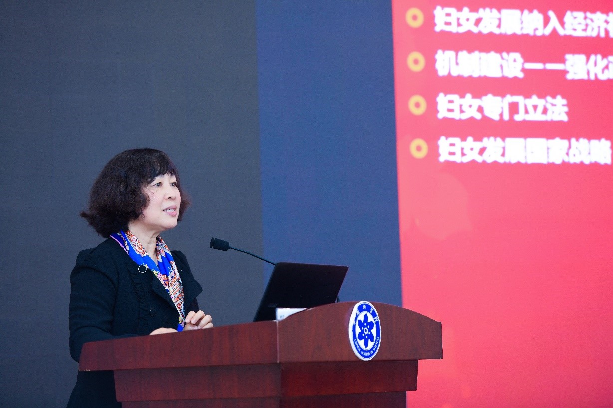 活动邀请了全国妇联妇女研究所研究员、副所长姜秀花作党史学习专题辅导报告。报告以《中国共产党领导下的妇女运动史》为题,对党领导下中国妇女运动的基本认识进行了全面阐述,系统讲解了新民主主义革命时期、社会主义革命和建设时期、改革开放和社会主义现代化建设新时期、中国特色社会主义新时代等四个时期中国妇女运动的发展历程以及妇女工作的创新理论与实践,专题报告内容丰富、系统透彻,深入浅出、入脑入心。