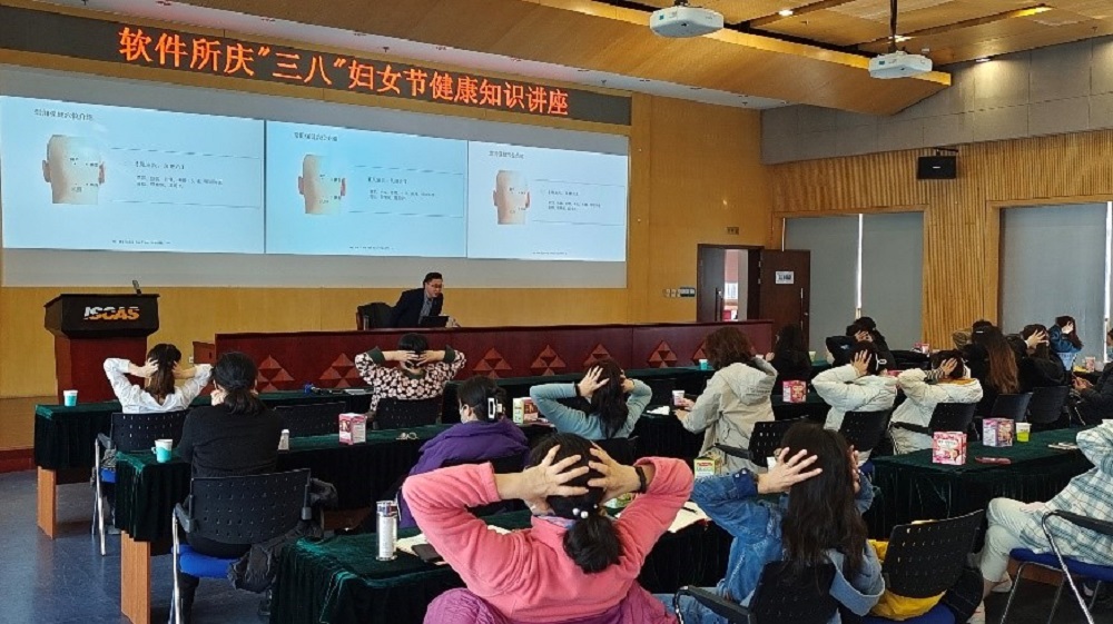 举办妇女健康知识讲座。3月4日,软件所邀请北京中医药大学副研究员刘肇恒进行“常见妇科疾病,秋冬季节外感病及办公室综合征的预防和调护”的讲座。讲座从中医角度对常见的妇科病及办公室工作中常出现的颈肩腰腿痛、失眠及冬春季节的多发呼吸道传染病的预防和治疗进行了讲解,并向大家介绍了常用保健穴位。大家认真聆听,积极互动。