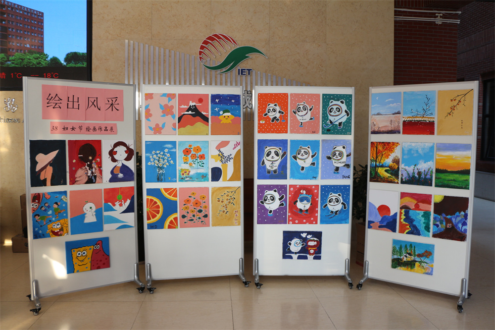 本次绘画体验活动邀请了北京市门头沟中学美术老师郭新宇为大家现场授课并指导绘画创作。郭老师首先简要介绍了绘画艺术中对美的定义和欣赏方式,详细讲解了丙烯画的基本画法、用笔技巧和结构关系等绘画基本知识,随后带领大家开始绘画体验。铅笔打稿、调和颜料、线条勾勒、描绘,在老师的悉心指导下,女同志们在画布上描绘出一幅幅动人的画卷,在艳丽的色彩和画笔之间,体验诗和远方。可爱的冰墩墩、醉人的山水风景、明丽的花朵和卡通形象,每一幅作品都展现了对美的独到理解,彰显了爱与自信,体现出当代科研女性的魅力和对美好未来的向往。本次绘画完成的作品还在研究所A楼大厅进行了为期两周的绘画作品展览。