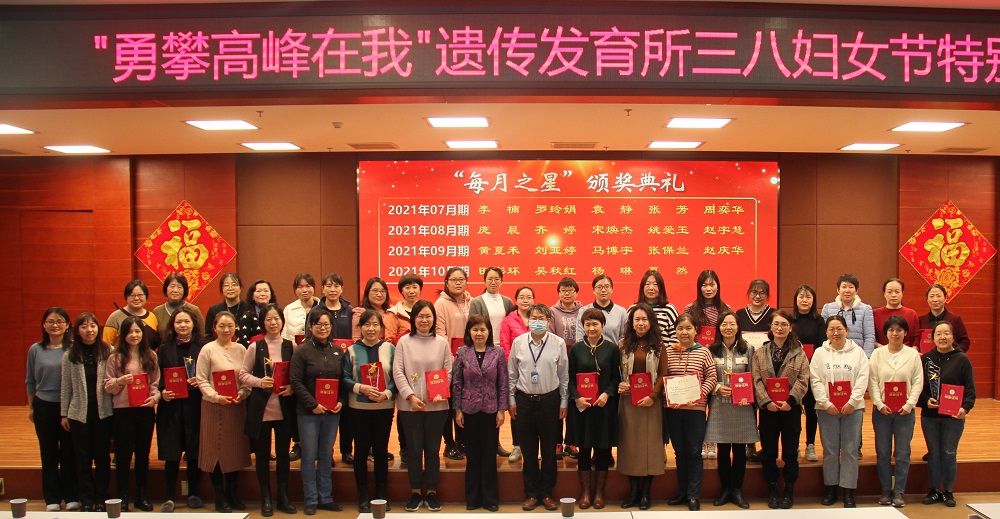 为增加女职工的荣誉感和归属感,2022年 “三八”妇女节,暨“每月之星”活动开展一周年之际,遗传发育所妇委会对过去一年获得“每月之星”的获奖者进行了集体表彰,由研究所党委书记兼副所长邢雪荣和党委副书记兼纪委书记申倚敏为各位获奖者颁发荣誉证书,以激励她们在新的一年再接再厉,继续为研究所的发展贡献力量。