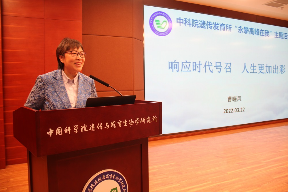 2022年3月22日,为了更好地落实学习“两会”精神,激励女性充分发挥巾帼科研力量,遗传发育所党委和妇委会邀请研究所CAS-JIC联合中心共同主任曹晓风院士为全所科研人员做题为“响应时代号召,人生更加出彩”的报告交流。