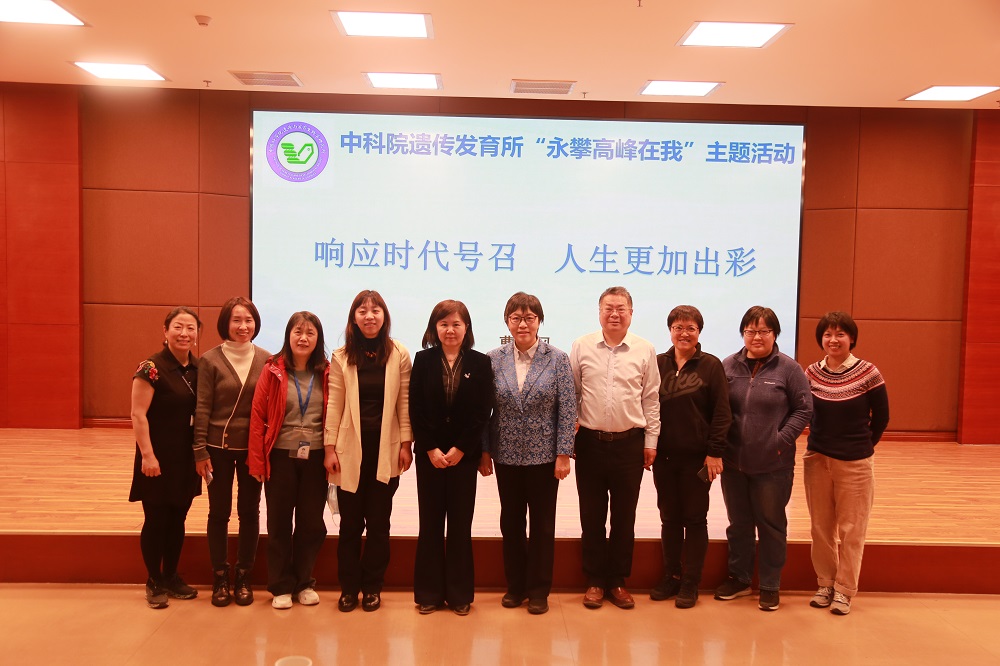 为纪念第112个“三八”国际劳动妇女节,响应院妇工委、院工会女工委关于继续深入开展“科苑女性活动月”活动的号召,充分展现女职工的风采风貌,体现女职工在科研建设中“半边天”的作用,遗传发育所妇委会以“勇攀高峰在我”为主题开展了一系列报告、交流、学习活动。主要活动内容如下: