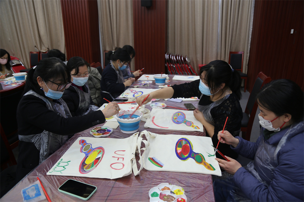 在最后一天的手绘帆布包制作时,大家纷纷调配自己喜爱的颜色,为帆布包上的光源图形上色,用自己独特的创意制作出了多个“光源限定款”。