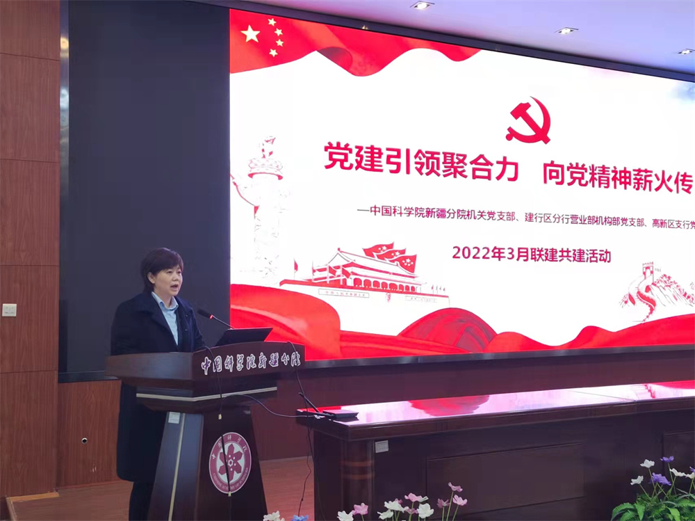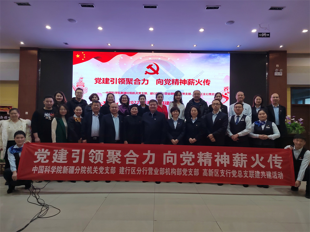 3月23日,中国科学院新疆分院机关女工委联合机关党支部与中国建设银行新疆区分行营业部机构部党支部、高新区支行党总支开展“党建引领聚合力 向党精神薪火传”联合共建活动,新疆分院分党组副书记、纪检组组长、机关党委书记安尼瓦尔 ?买买提、建行新疆区分行营业部党委委员、副总经理文江铃等共计40余名党员参加了联合共建。