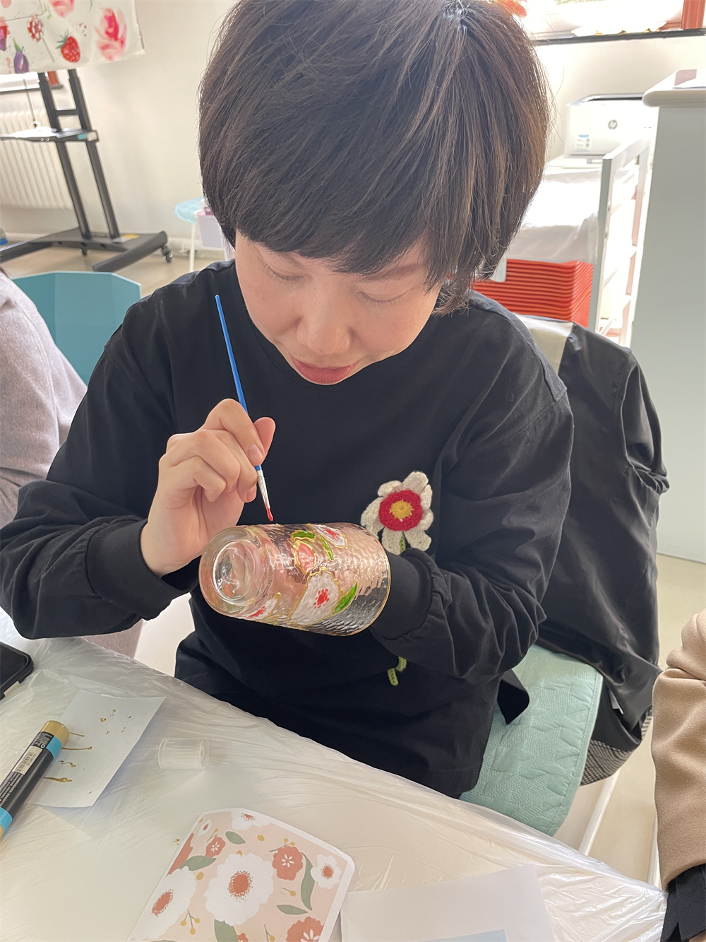3月8日下午,公司组织女职工开展“金丝彩绘玻璃杯”主题手工艺术活动。活动现场,女职工欢聚一堂,专业彩绘老师先给大家讲解彩绘玻璃杯的操作流程和注意事项,并通过展示精彩作品增加女职工完成作品的信心。听完老师的讲解,女职工们迫不及待地拿起画笔,在充满浪漫又梦幻的彩绘玻璃杯上开起一场艺术创作,尽情展现隐藏在内心的艺术细胞,勾勒出一幅幅独一无二的图案,温柔细致地将每一刻的美好绘制在玻璃杯上,成为一个个专属的温暖定制,在阳光下散发着惊艳的美感。