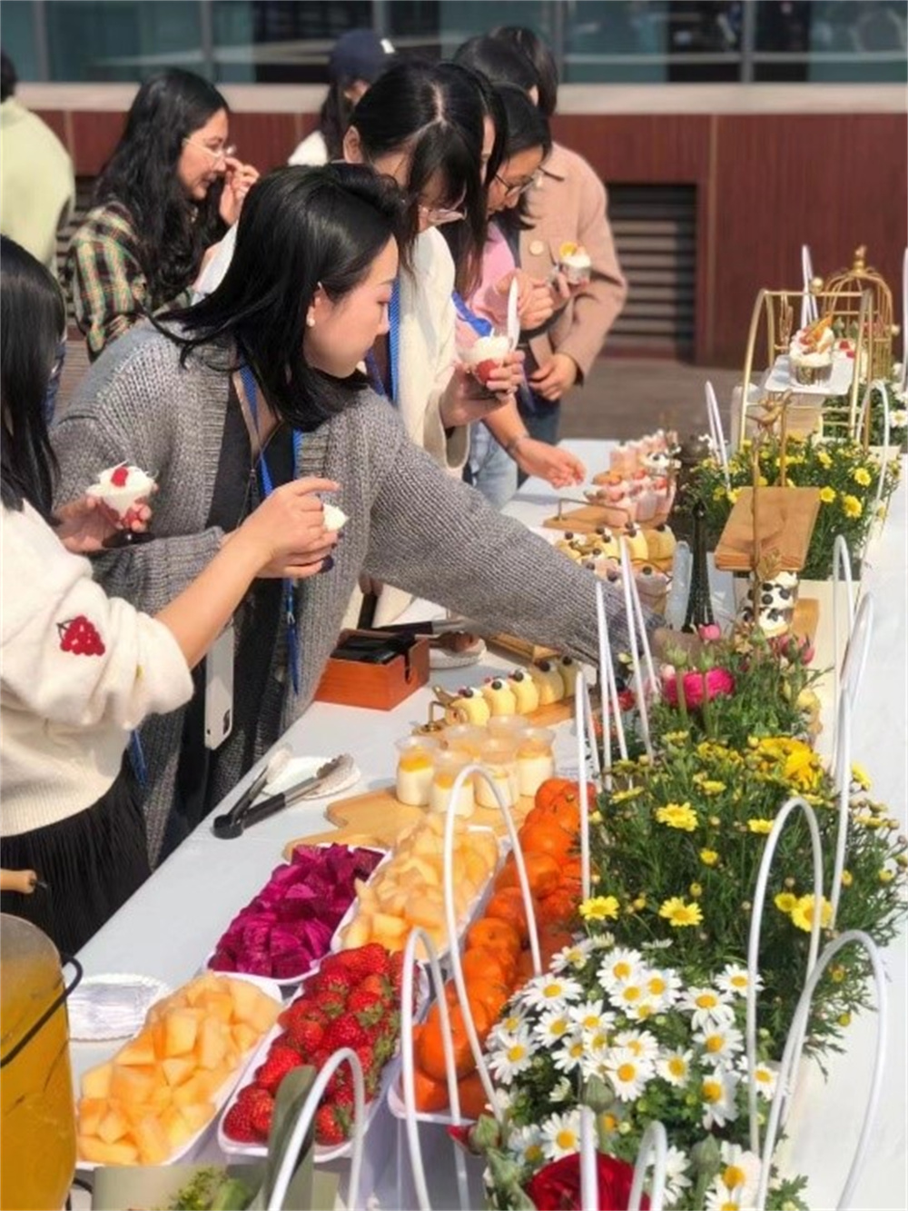 第一与第四工会小组在中心新馆五楼花园露台举行了轻松愉快的冷餐会暨老同志退休话别活动,女职工们在烂漫春光中品尝美食、开心畅谈。借此机会,中心领导、职工与第四工会小组即将光荣退休的陈茜老师话别纪念。陈茜回顾了辛勤奉献的难忘岁月,对温暖的单位大家庭表示不舍。工会小组为陈茜送上鲜花与纪念礼物。
