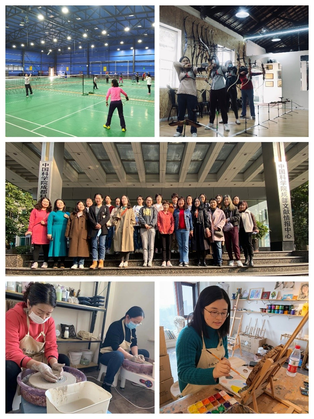 第三工会小组的女同志们度过了文武双全的一天。在老园区合影后,女职工分小组分别体验了陶艺、绘画、射箭和打羽毛球运动,锻炼身体、陶冶情操,其乐无穷。