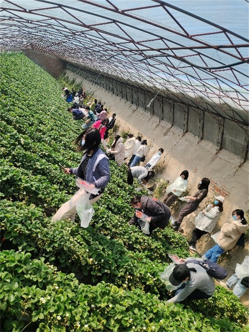 3月8日下午13:00,大家乘坐大巴来到了草莓园。在工作人员的带领下走进草莓棚,体验亲手采摘的乐趣。一颗颗鲜红欲滴的草莓,在绿叶的衬托下显得格外诱人,品尝着草莓的香甜,体验着采摘的乐趣,欢声笑语洋溢在每个采摘大棚……