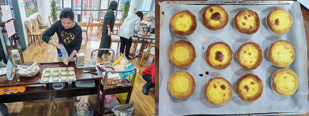 最后,大家品尝了自己亲手制作的蛋挞和披萨,烘焙活动在甜蜜与欢乐的氛围中画上了圆满的句号。