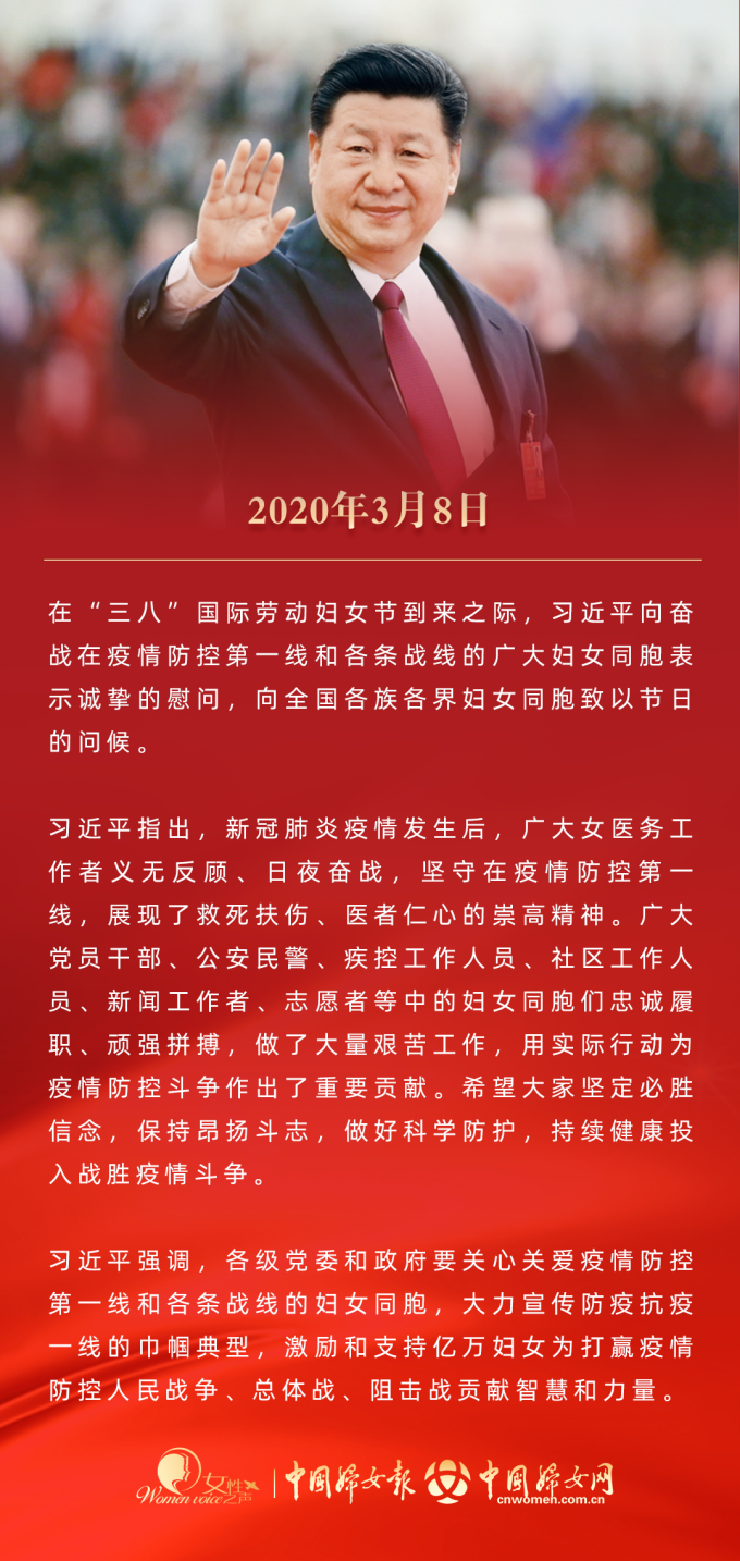 2013年至今,每逢“三八”国际妇女节到来之际,习近平总书记都会代表党中央向各族各界妇女送上节日祝福。