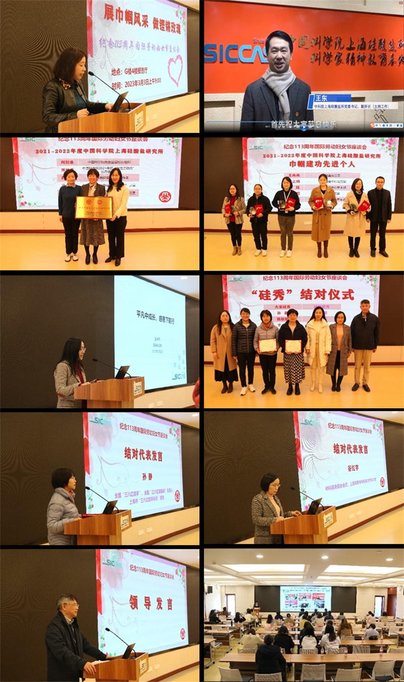 为纪念和庆祝第113个“三八”国际劳动妇女节,激励和引领广大女职工矢志投身科技创新事业,营造尊重女性、关爱女性、支持女性科研事业的良好氛围,中国科学院上海硅酸盐研究所妇委联合工会开展“展巾帼风采,做铿锵玫瑰”女性活动月系列活动。通过组织召开国际妇女节交流会,搭建成长平台,引导女职工岗位建功;推动大家“硅秀”结对,选树优秀巾帼典型;通过部门领导送祝福和“硅秀”趣味运动会,营造关爱与团结进取氛围,力求让全所女性度过一个舒心、幸福、快乐的阳春三月。