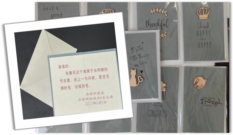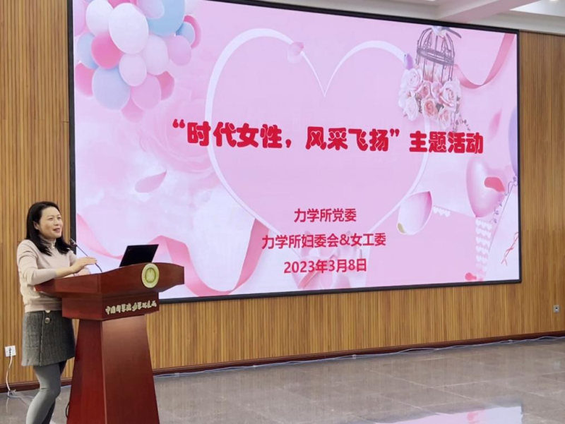 2023 年是全面贯彻落实党的二十大精神的开局之年,也是中国科学院推进改革创新发展的关键一年。为隆重纪念第113个“三八”国际劳动妇女节,动员广大女职工践行新思想、建功新时代、展现新作为,按照院妇工委、院工会女工委部署,在所党委、所工会的支持下,力学所妇委会、女工委组织开展了“科苑女性活动月”系列活动。