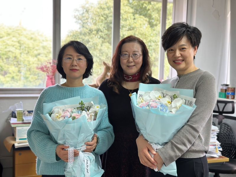 (妇委主任柳红为女科学家送上节日的鲜花)
