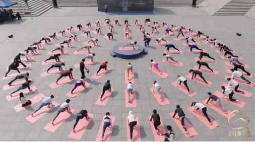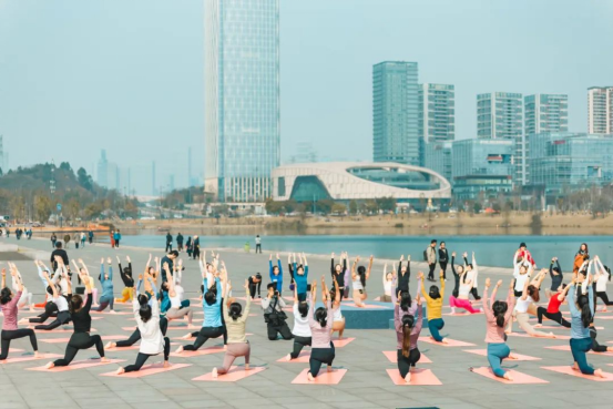 活动中,在新区各条战线、各行各业的科学家、企业家、教师、网格员、程序员身着瑜伽服,在蓝天白云与碧波荡漾之下,尽情伸展自己的身姿,展现新区女性知性健康、优雅时尚的美好形象,激发活力、凝聚信念。在一呼一吸的吐纳之间,她们与公园城市的自然融为一体,尽显女性的力量之美。