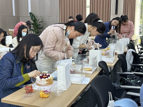 积极加强与地方妇女组织的联络互动,对外展示物质院女科技工作者风采。共同举办“浓情相伴 悦享时光”公益学堂。烘焙教程使大家在学到美食知识、厨艺技巧的同时,体验手工制作蛋糕的乐趣。茶艺文化的宣传展示帮助女职工完全放松身心、疏解科研压力、感受恬静优雅的美好时光,提升自我幸福感。