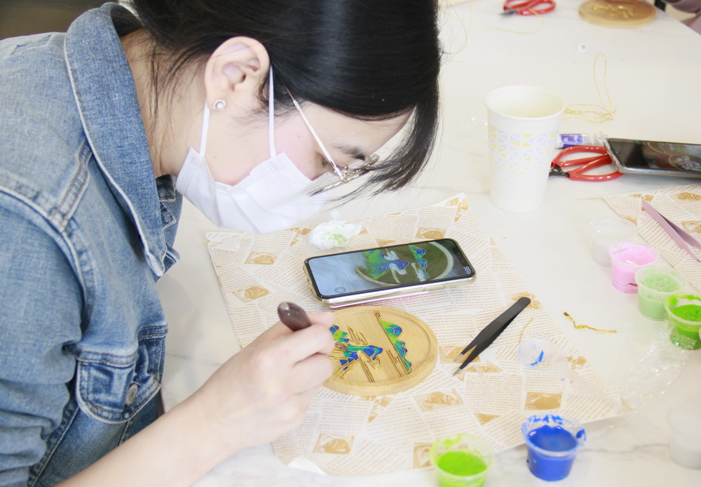 3月8日,分子细胞卓越中心妇委举办主题体验活动,组织女同胞们分组参与中国非遗文化“掐丝珐琅”和现代流行新潮“奶油胶工艺”体验活动。“奶油胶DIY”组的“能工巧匠”们迅速进入状态,在老师的指导下按照自己的设计图纸装点手机壳和笔筒,短短一个小时就陆续晒出了制作完成的作品。另一边的“掐丝珐琅”组则陷入“苦战”,看似简单的描图掐铜丝,实际上非常考验耐心与细心,最后的晕染上色更是需要精益求精,让每一幅“千里江山图”与“出水芙蓉照”都逼真再现、栩栩如生。活动中大家将科研创新中最擅长的奇思妙想与“传统+新潮”两种手工艺相融合,以对待实验数据同样的“精工细作”制作手工艺品,感受与科研工作不同的指尖上的“美”,用绘制多彩世界“画笔”点燃对科技创新的热情。