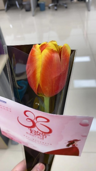 3月8日,文献中心还贴心地给每位到岗的女职工一支郁金香庆祝“三八”节。