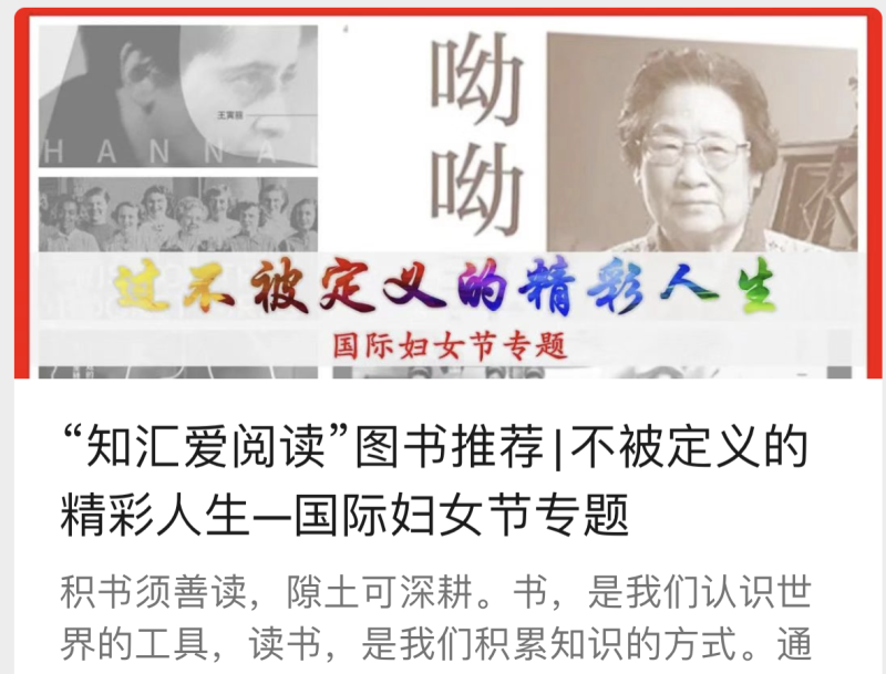 通过“中科知汇”微信服务公众号向全院分享了5本女性传记全文。精选了古今中外科技、企业、飞行员、政治家等领域的杰出女性代表传记,读来使人掩卷而思。妇委会、工会女职工委员会还组织所有妇委会委员及女职工代表通过视频分享了院妇工委组织的“与二十大女代表”面对面分享活动。