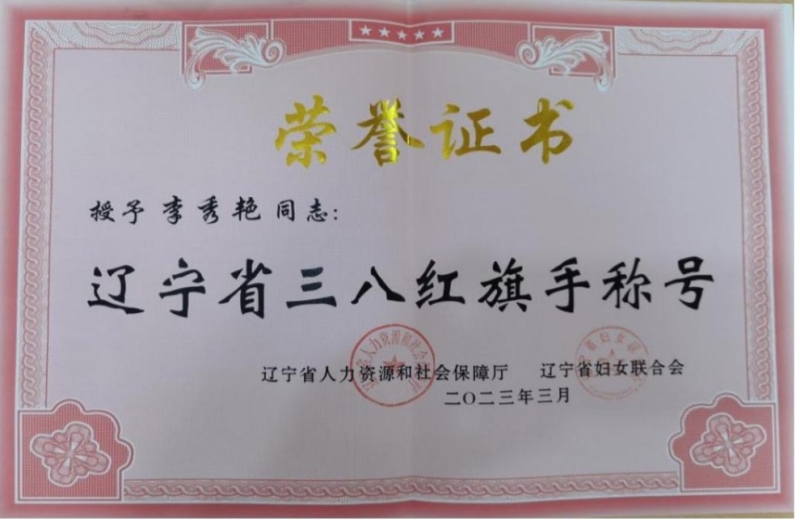 在第113个“三·八”国际妇女节到来之际,辽宁省妇女联合会对全省各条战线上涌现出的巾帼建功先进典型进行表彰,以激励广大女职工在服务实现全面振兴新突破中走在前当先锋作表率,大力弘扬劳模精神、劳动精神和工匠精神,我所李秀艳研究员被授予辽宁省“三八红旗手”荣誉称号。