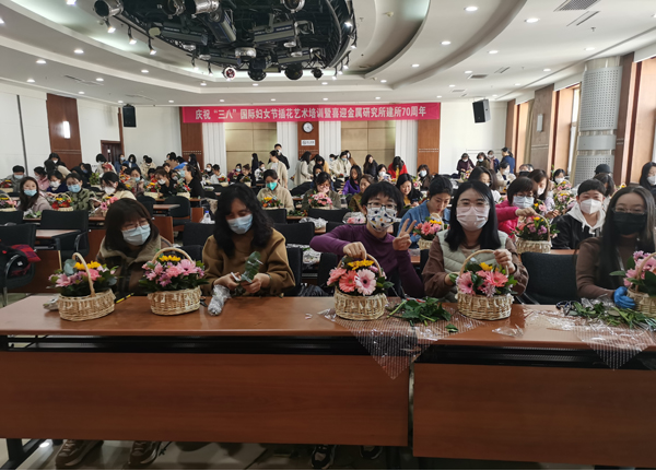 3月8日上午,所工会女工委举办了“金属之花 魅力绽放”主题插花活动,来自各部门的女职工近200人参加了活动。 女工委主任祖亚培向女同胞致以节日的问候和祝贺,随后花艺老师带领大家走进花的世界。花艺老师详细讲解了花语和插花形式、规则、技巧,使大家对插花有了基本的认识。在老师的现场演示和指导下,女职工们尽情地享受着插花活动带来的快乐,她们发挥创造力,不同的组合,一修一剪,赋予了鲜花更丰富的内涵,使原本普通的花草富有了或热烈、或雅致、或温馨的意境,完成的插花作品也为自己奉上的一份温馨浪漫的节日礼物。