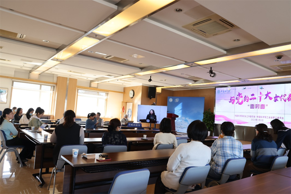2023年3月8日上午,青藏高原所妇委会组织女职工在研究所视频分会场参加了“与党的二十大女代表‘面对面’”活动,参会人员观看了中科院巾帼风采视频展播,学习了党的二十大女代表王秀杰、付巧妹、陈玲玲的交流报告,她们感人的事迹更加坚定了全所女职工立足本职,不忘初心的理想信念。