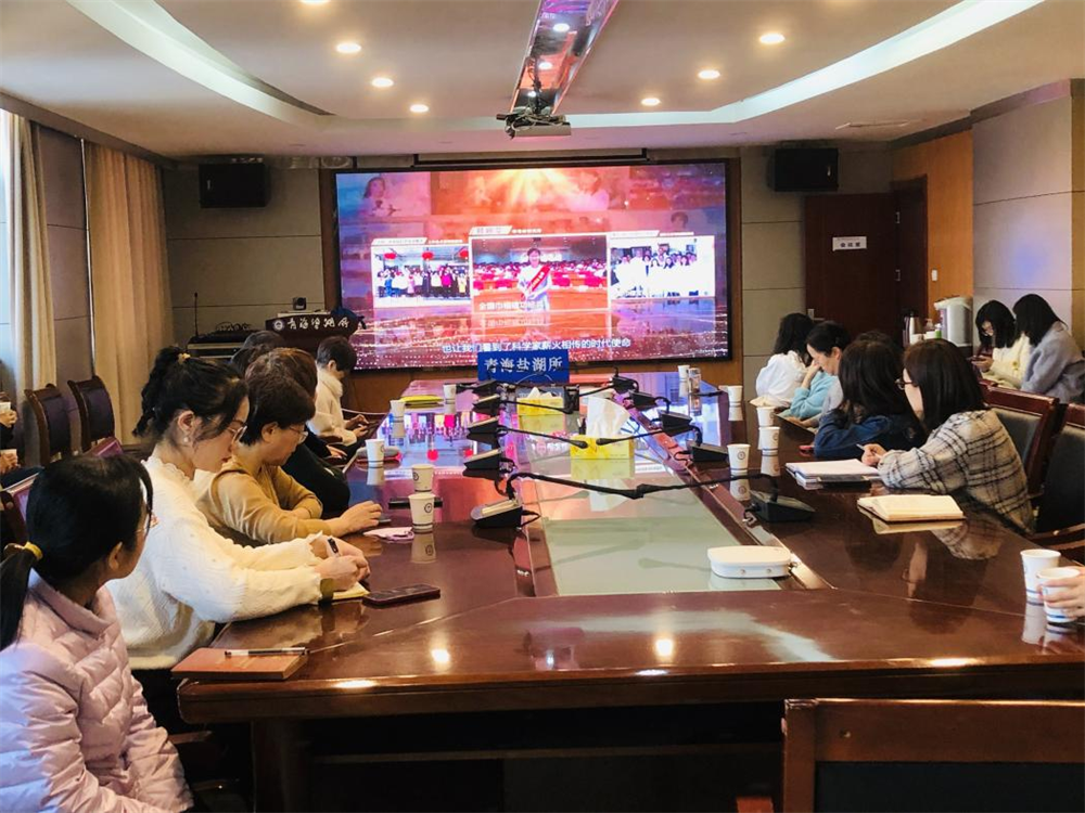 开展“弘扬老一辈科学家精神,传承盐湖精神”宣传教育活动。女同胞们参观了党建所史展览室(图2),全面了解了所史、盐湖功勋人物、“盐湖精神”主题及各支部风采视频等系列展示,充分展现青海盐湖所在为盐湖科技创新、建设世界级盐湖产业基地建言献策方面发挥的勇于担当、勇于作为的积极作用。