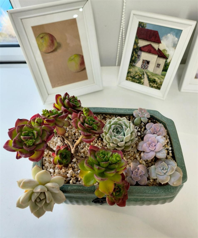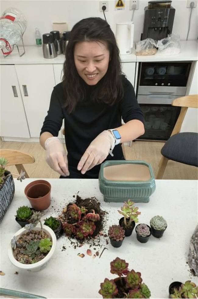 大家都沉静在自我创作、欣赏之中,一颗颗清新可爱的多肉植物,在大家的巧手下,变成了一个个微盆景,充满着诗情画意。